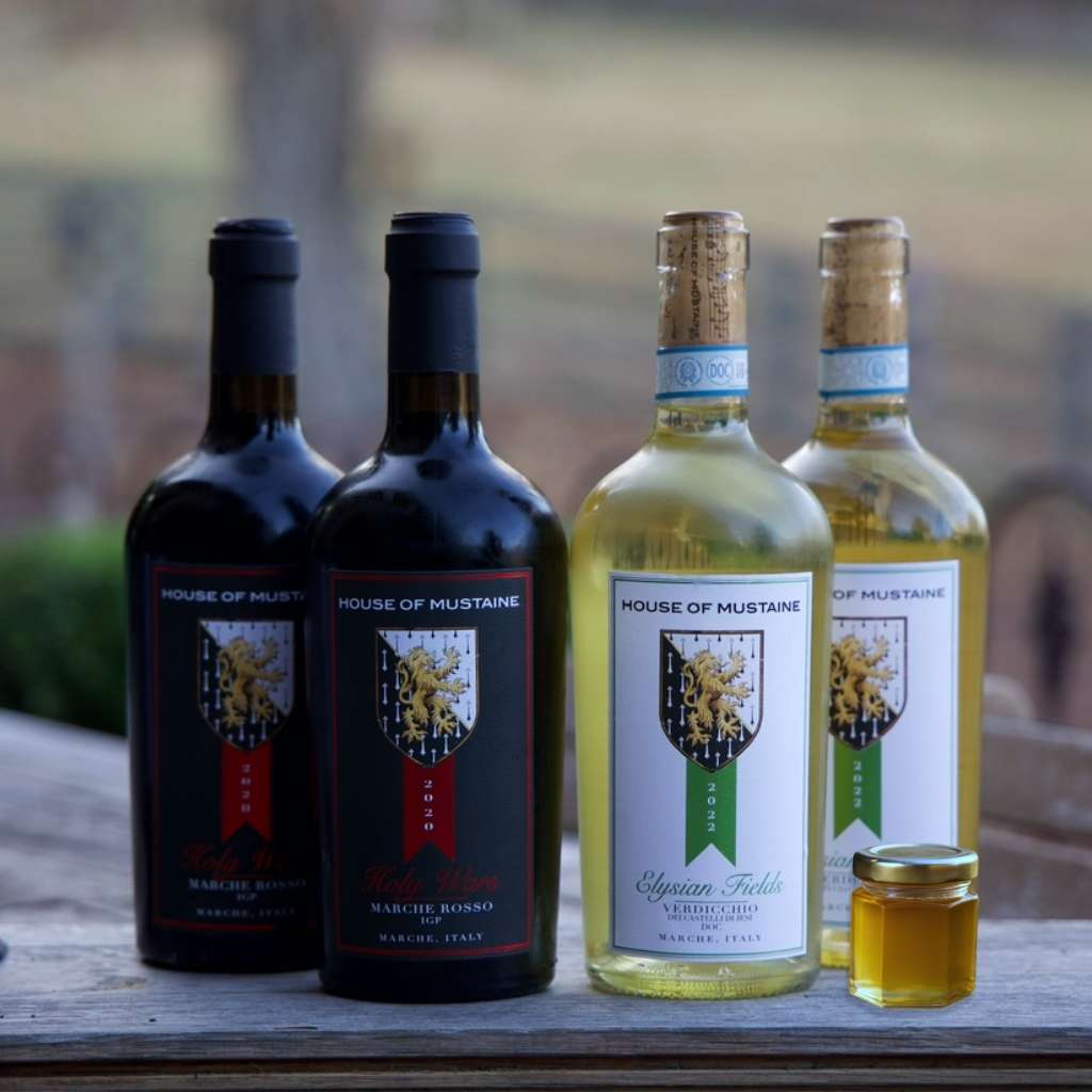 Our Thanksgiving reds bundle brings together two of our best selling red wines with a taste of sweetness from our Tennessee farm. The Holy Wars Marche Rosso '20 from our Italian vineyards of Marche offers the kind of warmth and depth that makes everyone linger a little longer at the table—think dark jammy black fruit, earthy vanilla, and that perfect balance between elegance and approachability that pairs beautifully with everything from roasted turkey to mushroom risotto.